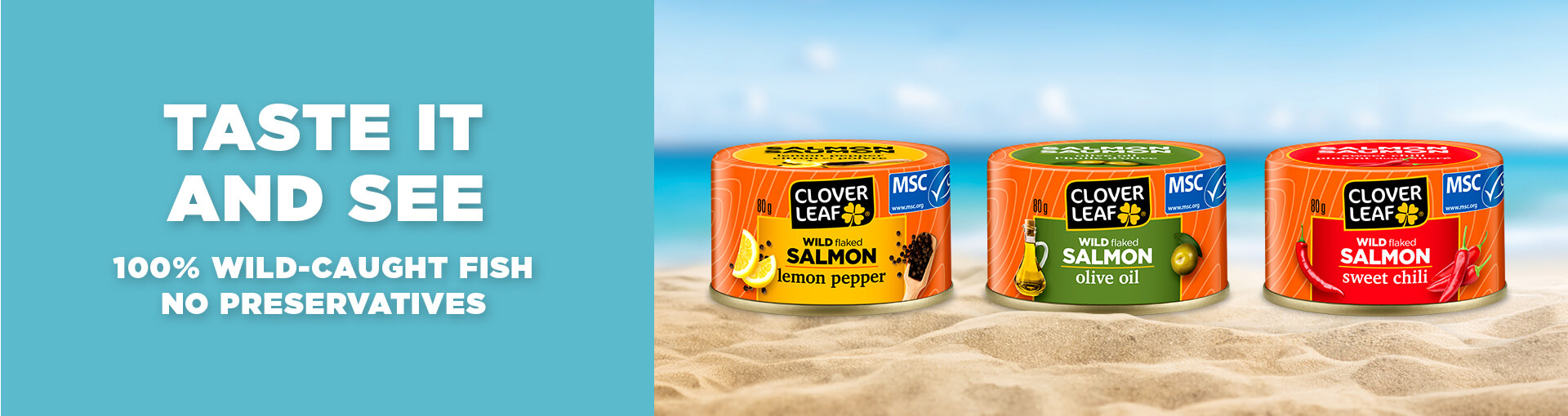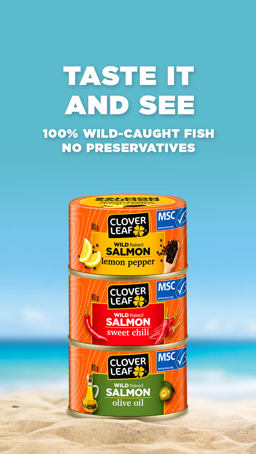 Clover Leaf Flavoured Salmon are flavourful, healthy and delicious protein snacks to power through the day and this convenient, ready-to-eat protein can also be added to step-up your meal! Our Flavoured Salmon products are a source of omega-3, have no preservatives, and is a perfect combination of 100% wild-caught, MSC Certified pink salmon with high quality herbs and spices in three delicious, canned fish varieties – Sweet Chili, Lemon Pepper and Olive Oil.