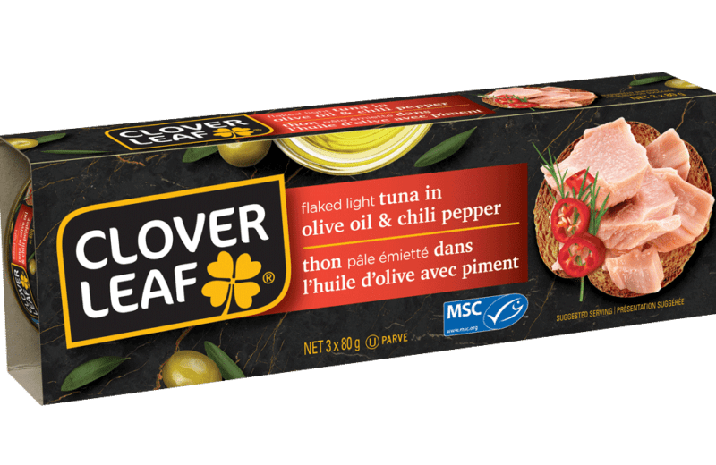 2 cans (80 g each) Clover Leaf Flaked Light Tuna in Olive Oil & Chili Pepper tri-pack (or Flaked Light Tuna in Olive Oil tri-pack), drained & reserve oil from one can