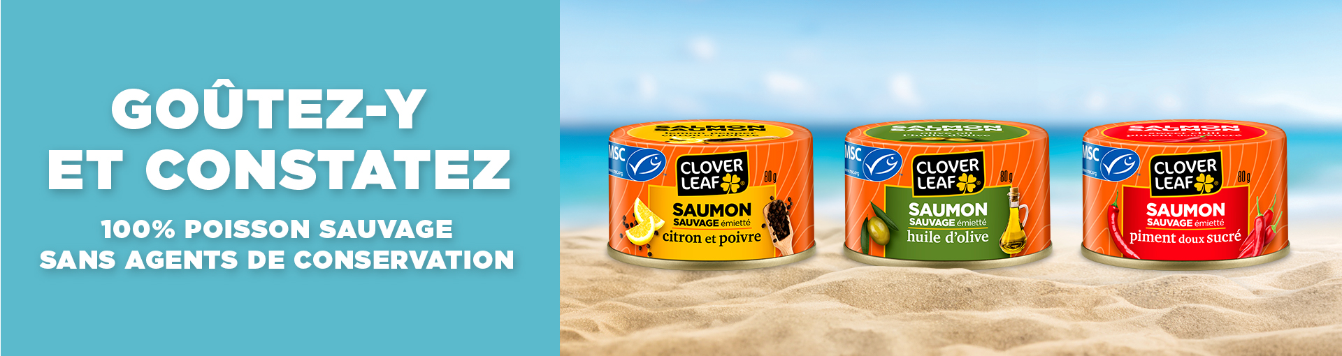 Les saumon assaisonné de Clover Leaf sont une collation protéinée savoureuse, saine et délicieuse pour vous donner de l’énergie tout au long de la journée, et peut-être préférez-vous ajouter cette protéine pratique et prête à manger ! Nos produits de saumon assaisonné sont une source d’oméga-3, sont sans agents de conservation, et vous offre une combinaison parfaite de saumon rose pêché à l’état sauvage certifié par le MSC et d’herbes et d’épices de haute qualité dans trois délicieuses variétés de poisson en conserve – piment doux sucré, citron et poivre, et huile d’olive.