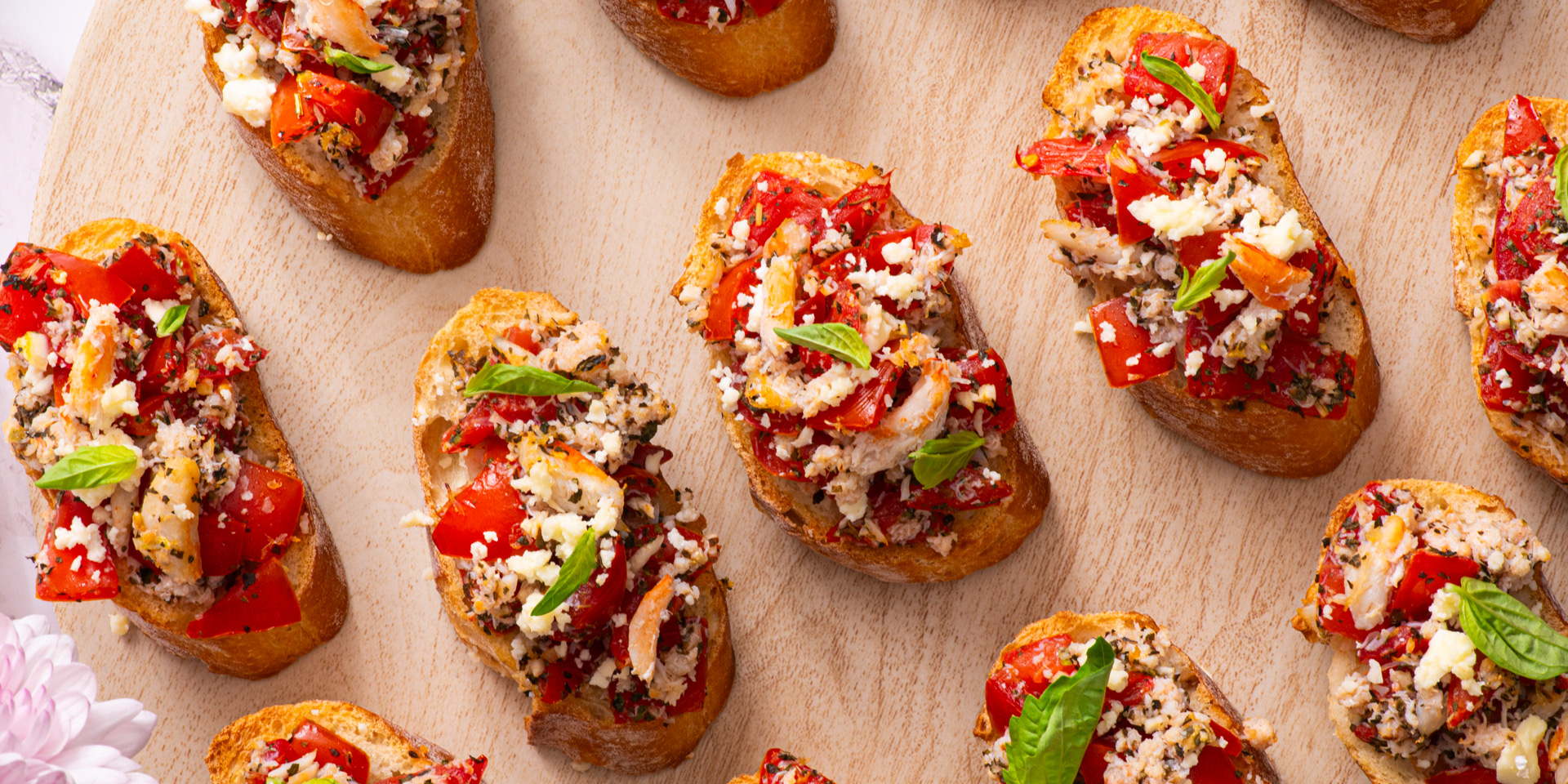 À l’origine, la bruschetta était faite de tranches de pain grillé sur lesquelles on frottait de l’ail et on arrosait d’huile d’olive. Cette variante délicieuse peut être servie comme repas léger ou comme canapés, prêt en 20 minutes, pour des fêtes.